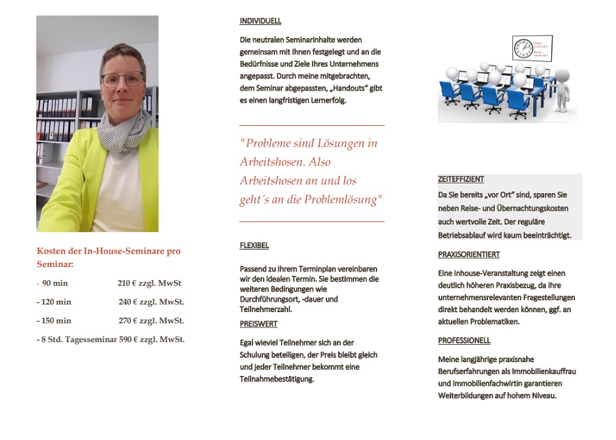 In-House-Schulungen Es können gern schon Termine vereinbart werden, auch langfristig.